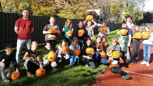wurden von der 1C-Klasse rechtzeitig zu Halloween geschnitzt.