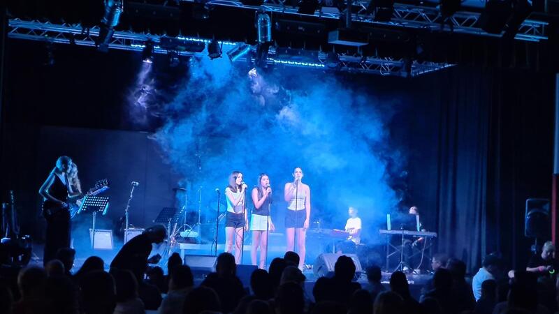 Wie jedes Jahr geht es am Mittwoch vor den Ferien heiß her im Forum. Die sechs Schülerbands geben ein Abschlusskonzert und der Saal ist gerammelt voll.