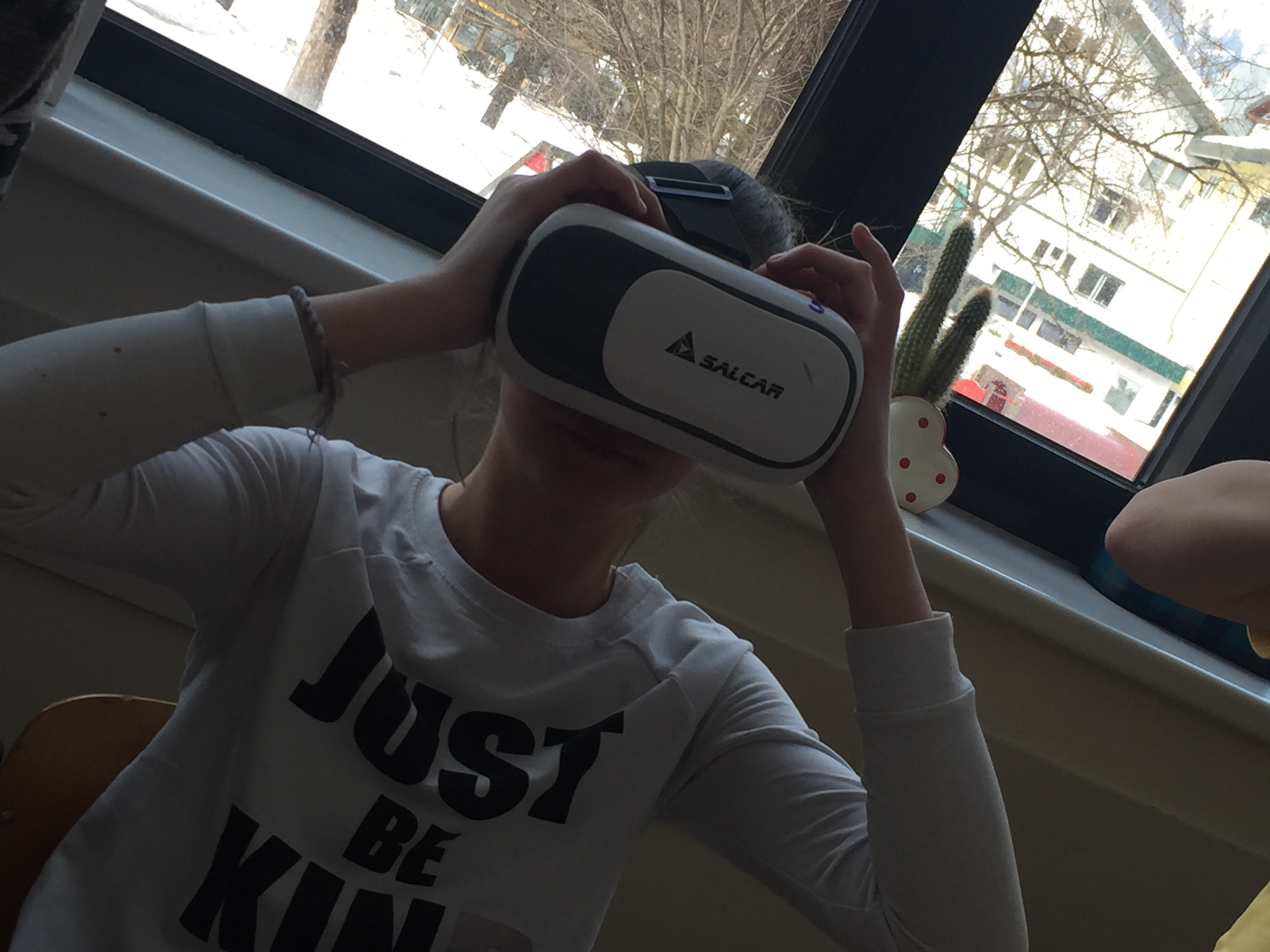 So kann mit Hilfe der schuleigenen VR-Brillen ein Spaziergang am Mond unternommen werden oder man taucht durch einen Teich und lernt dabei sämtliche biologische Bereiche kennen.